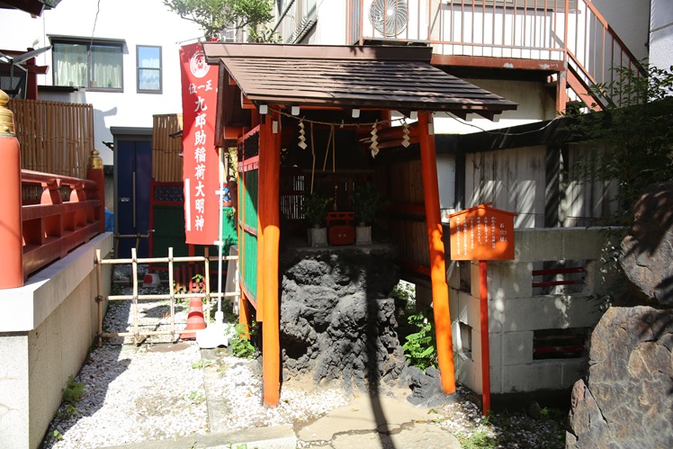 この「新吉原」には廓の守護神として五つの稲荷社が存在しました。吉原の入口である大門(おおもん)の手前に「吉徳稲荷社」、さらに廓内の四隅には「榎本稲荷社」「明石稲荷社」「開運稲荷社」「九郎助稲荷社」がお祀りされていました。